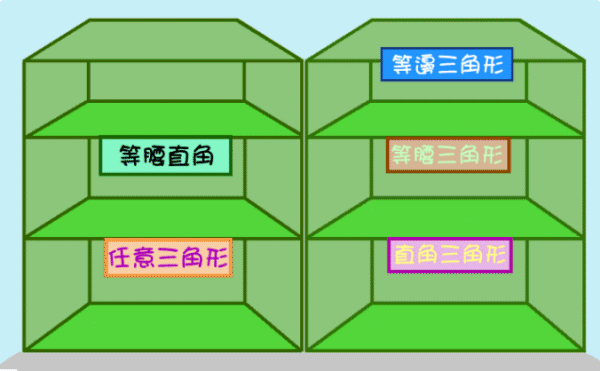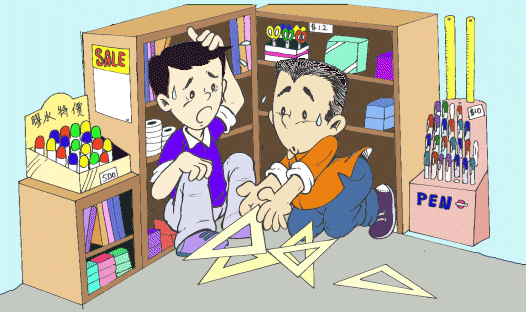 在 文 具 店 內 不 小 心 推 亂 了 五 種 三 角 尺 的 位 置 , 請 你 幫 忙 把 它 們 放 回 正 確 的 位 置 。